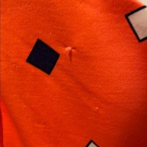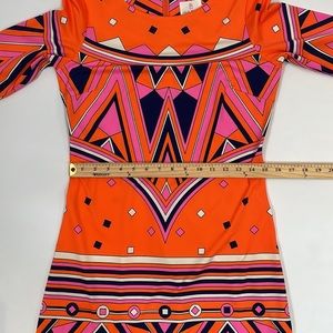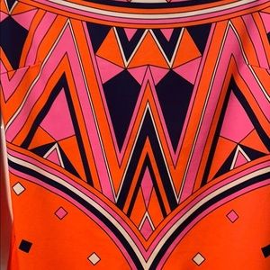 JB Julie Brown dress size M orange pink navy small pull on back left shoulder.