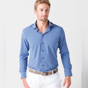 Hits above knee; short sleeve; navy blue and white floral print with ruffle at tiers; easy, loose fitting dress; only worn a few times - excellent used condition from a non-smoking home