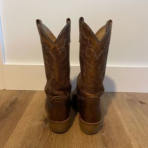 Make it work! Stand tall in these western work boots. Sturdy and ultra-durable, these boots are designed with built-in shock absorption, which prevent jolts from echoing up your back. The shaft and vamp are detailed with medallion stitching. Sleek leather lining assists the leather upper in shape retention. From Double H.
