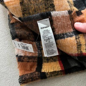 NWT Old Navy Tartan Plaid Scarf (Tan, Orange, Red, Black) Raw Edge