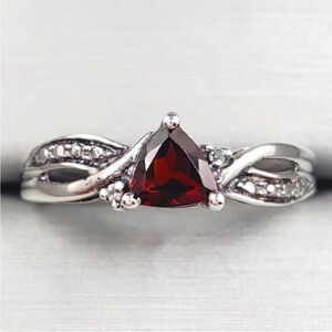 10k Solid White Gold Trillion Pink Sapphire & Diamond Accent Ring