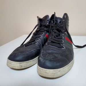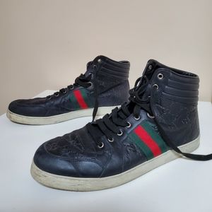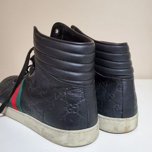 GUCCI SNEAKERS GG SIGNATURE SIZE 12 HIGHTOP 221825 LEATHER GUCCISSIMA black men