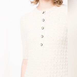 One of the many reasons Coco Chanel made a name for herself in the fashion industry was due to her forward-thinking and creativity. In 1925, the maison founder transported the wool-woven fabric of the sports world into haute couture. That heritage is seen on this ivory-white short-sleeved dress, finished with gold-tone metallic threading.