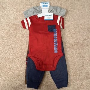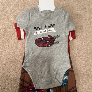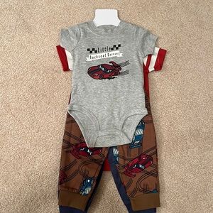 This Carter's car-themed bundle for baby boys is new with tags and includes 2 onesies and 2 pants, allowing you to create 4 different outfit combinations!
