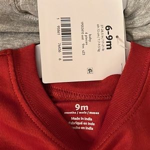 I have FOUR sizes available. ALL of them say a range in the months, but when looking at the actual tags in the clothing, they all read the LAST size of the range. For instance- the set featured in the photos is 6-9 months, but you will see that the tags actually just say 9 months (not 6 to 9).