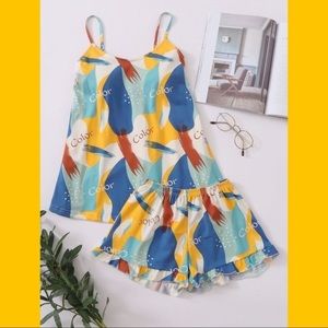 New Colorful Cami Ruffle Pajama Set