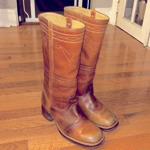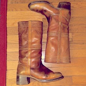 RARE VINTAGE Sz 9.5 CAMPUS long horn stitch 13.5” tall boots Brown leather