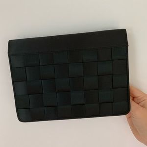 Can be worn as a crossbody or carried as a clutch. In excellent condition with no flaws.
