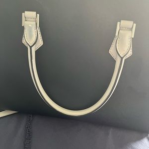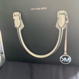Black and greyish/whitish Michael kors hand bag. Marks shown in picture.
