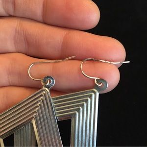 VINTAGE Silver Tone Diamond Shape Hook Dangle Earrings