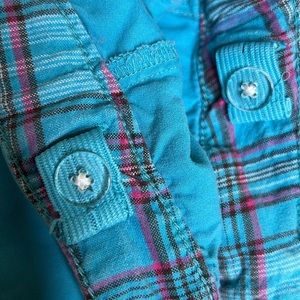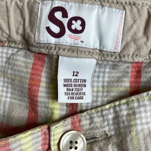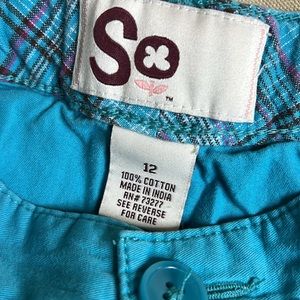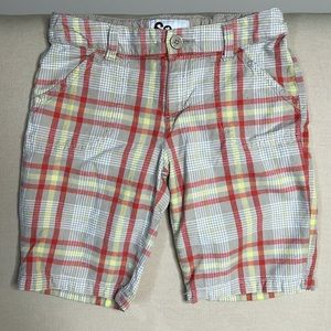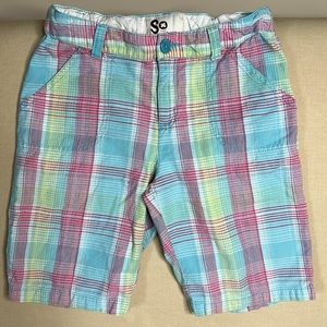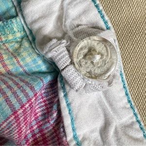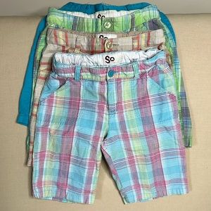 All adjustable waists in good shape except plaid/checkered blue adjustable FLAWED waist ribbon garter. Blue short has stubborn stain on the back.