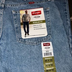 Wrangler Five Star Premium Denim Regular Fit Stone Wash Jeans Size 36x30 NEW