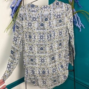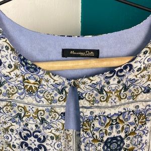 Massimo Dutti blue floral patterned keyhole blouse, size