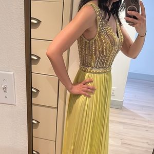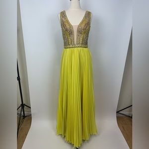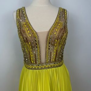 Terani Couture Yellow Beaded Prom Evening Gown NWT