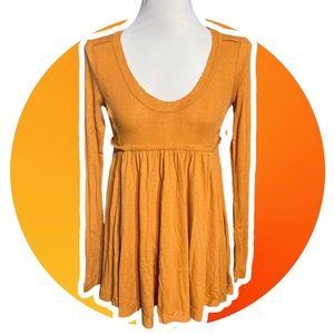 NWT TRUE CRAFT Babydoll Orange Top Long Sleeve Round Neck Size Small S