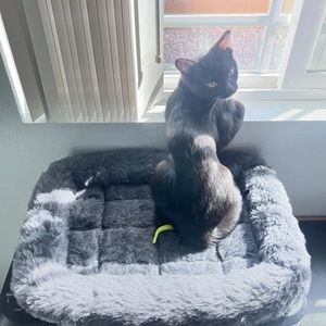 dark gray Fur calming bed Deluxe Plush Pet Bed