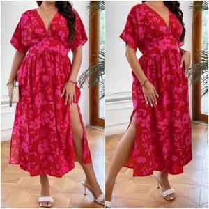 Boho Floral Print Plunging Neck Midi Dress