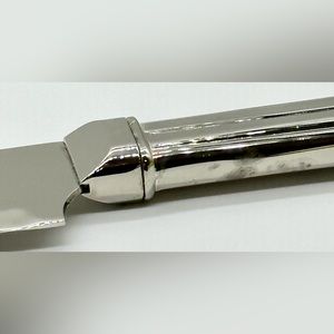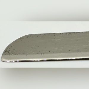 Silver Cake Knife, Wedding, Serrated Blade, Stainless, Size: 14", Perfect for cutting tall wedding cakes. It is in preloved condition. Has some pitting on the end and tarnish on the underside (noted in pics)