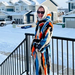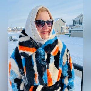 Anthropologie coat. -35C outside, but this incredibly bright, unique coat 🧥 kept me warm. Anthropologie hoodie also is very comfortable, soft and warm! 🥶☀️❄️🌸😊