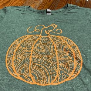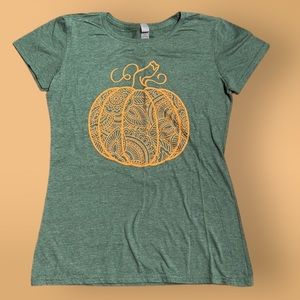 Instant Message Fall Pumpkin Tee Short Sleeve Runway Ready Couture Women’s Med