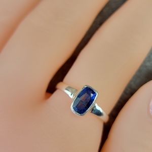 Native Blue Sapphire Gemstone Ring Size 7 Sterling Silver 925 Women Boho Jewelry
