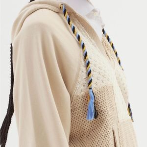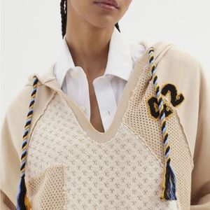 Urban Outfitters Bdg Carl Textured Hoodie Sweatshirt Drawcord Embroider Varsity Tan