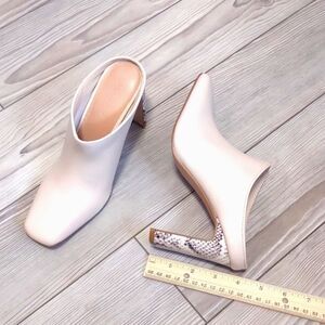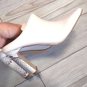(65-1820) Coutgo Womens Square Toe Mules Slip On Snakeskin High Heel Faux Leather Ankle Boots Sz 5.5