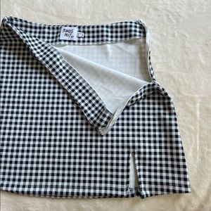 Black and White Checkered Mini Skirt with a front slit and zipper on the side