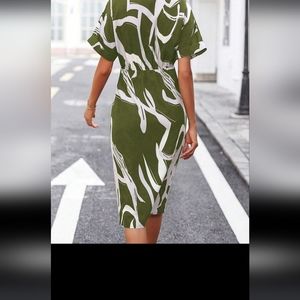 Shein Graphic Print, Batwing Sleeve, Ruched Front Dress
