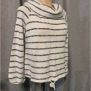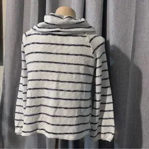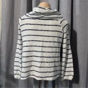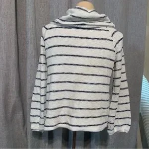 Caslon Womens M Black White Striped long, Sleeve Pullover Cowl Neck Sweater