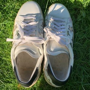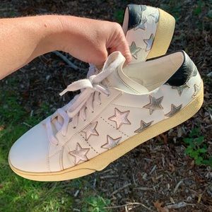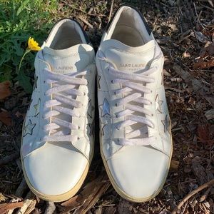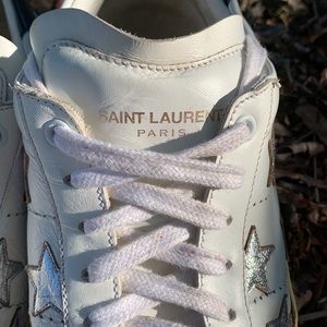 Saint Laurent Paris bright white silver star navy Sneakers Sz 42 1/2 designer shoes