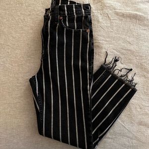 Abercrombie & Fitch - Black with White printed stripe - Denim - Straight Ankle