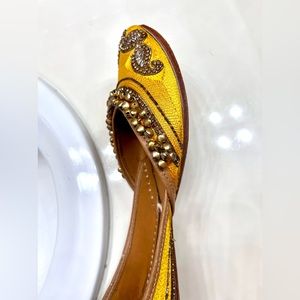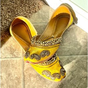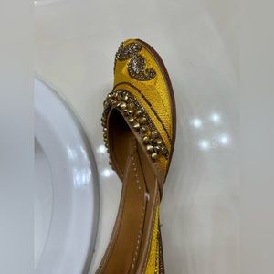 Worn once - yellow with kundan embroidery and gold bells. Handmade in Punjab - pairs well with everything! These are statement shoes 🩷🩷