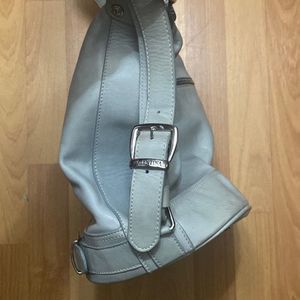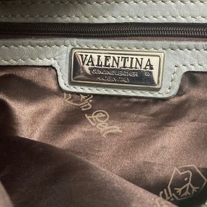 Valentina Teal Leather Bucket Shoulder Bag Double Zipper Made In Italy