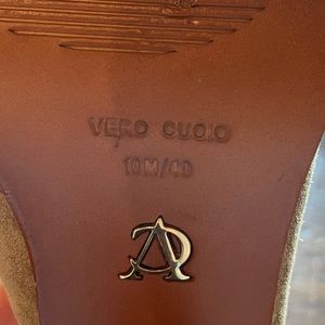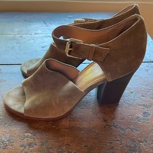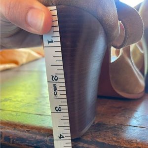 Great quality tan suede heels perfect for fall. Heels are 4” tall but chunky/black style so supportive. Heels are in great shape - suede shoes that these have been wore before but holds up well and has character. Random fact I can’t prove to you: Bar Rafaeli wore these before me haha!