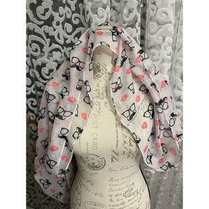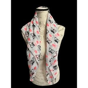 Vintage Silk Scarf Retro Design Lipstick & Mustaches Circa 1960s Unique 36x27"