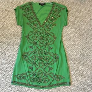 Make your night colorful! Green silk Hale Bob dress with metal riveting. Perfect for a night out or vacation attire.