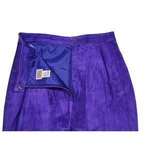 This beautiful vintage skirt from International Leather Collection is a stunning addition to any wardrobe. The royal purple color is eye-catching and the A-line style is flattering for all body types. The skirt is made of high-quality leather and suede materials and is fully lined for comfort.