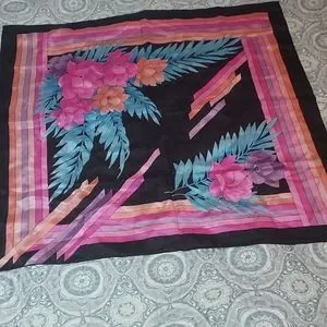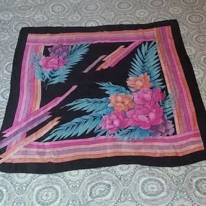 Size 32" X 31". Bright bold detailed floral print. Excellent condition. Unsure of brand. Multicolored.