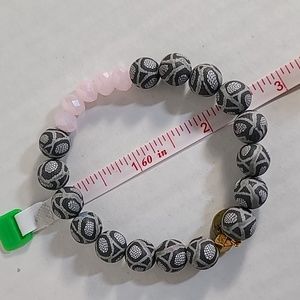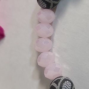 Excellent used condition. Gray rubbery beads with pink faceted glass beads. Stretch bracelet.
