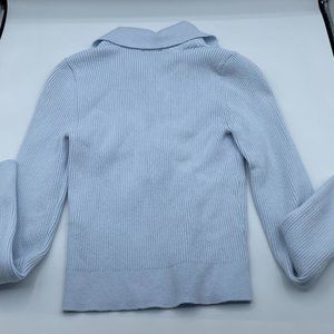 This is a baby blue piece from abercrombie and fitch, size extra small with quite a stretch. It has been worn and washed once, with no signs of wear. It's extremely comfortable and soft sweater type material.