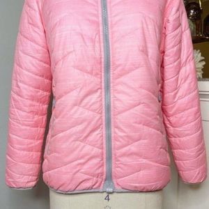 Under Armour ColdGear Reactor Winter Jacket. Storm 2 series which is highly water resistant and wind proof. The ColdGear Reactor intelligent insulation adapts and reacts to any activity or cold level for ultimate comfort. Two zippered pockets in front keep valuables secure. Features UA’s exclusive Magzip closure which clicks and holds together for easy struggle free zipping. In excellent condition. Youth size large, shown on a women’s small dress form. Color is Pop Pink Overcast Grey White.
