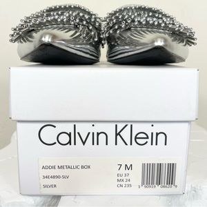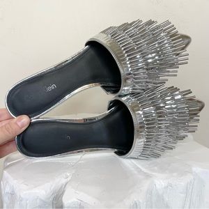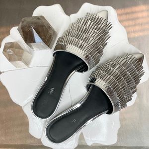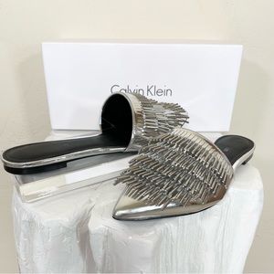 Calvin Klein Addie Metallic Silver Fringe Mule Slide