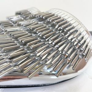 High gloss metallic silver upper with metallic aglet detailing