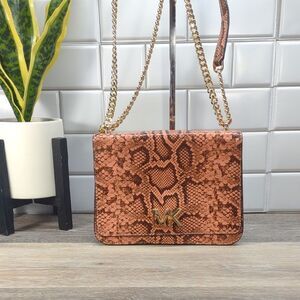 *6521 Michael Kors peach snakeskin convertible crossbody shoulder bag