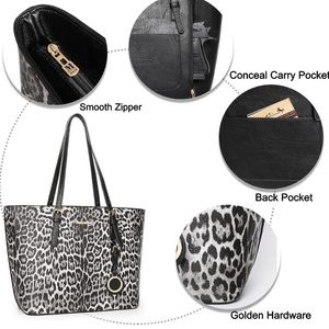B&W Montana West Fashion 3 pcs Handbag Set girafe Print Tote Bag Conceal Car…