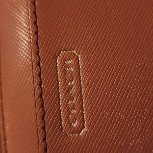 coral colored Coach wallet with zipper. The wallet is clean. Inside the coin zipper part is a little dirty/discolored from having change in it. Coach label has a little rubbing on it .