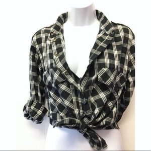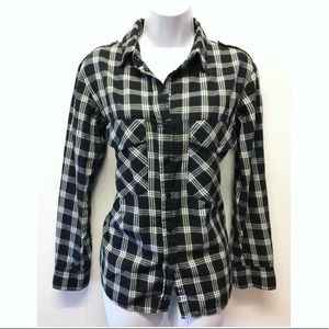 Must have Anthropologie flannel and you can wear so many ways! No flaws! Black and white plaid flannel. Front pockets!!