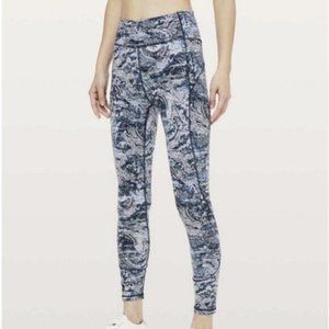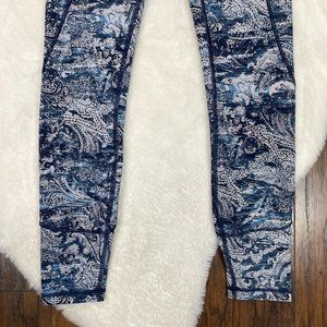 Lululemon In Movement Leggings 4 Blue Gray Paisley 7/8 Athletic Gym Workout
