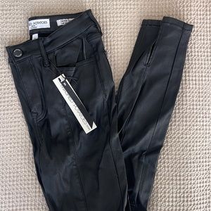 Brand new with tags leather coated jeans perfect for fall and winter detailed with slit on the ankle to elongate the leg! Super stretchy and comfy